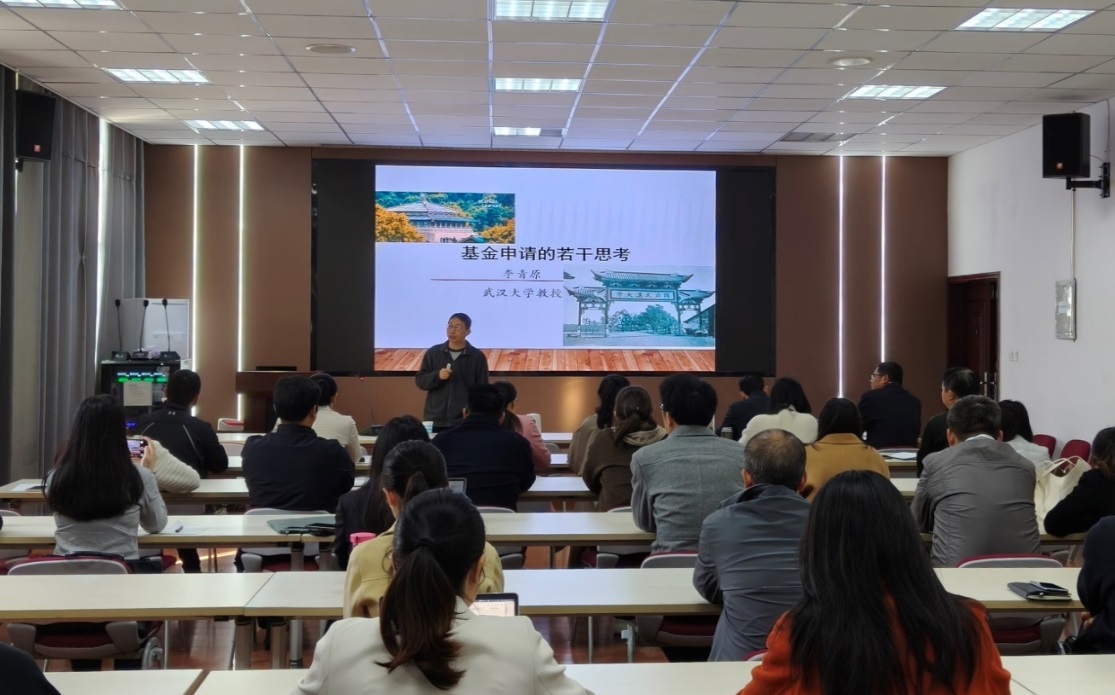 李青原教授聚焦经管类国家级项目申报全流程的关键环节,以系统严谨的逻辑框架,深入阐释了研究选题的精准定位、简表填写的规范要点、立题依据的论证逻辑、研究方案的科学设计等核心内容。李教授结合自身数十年深耕学术研究的丰富经验,重点围绕文献综述的撰写技巧、不同类别项目的评审标准与侧重点等核心问题,分享了兼具理论深度与实践指导性的科研方法,内容翔实具体、见解独到深刻,为在场师生搭建了清晰的项目申报认知框架。报告结束后,李教授与现场师生展开了面对面的深度互动交流,针对老师们提出的项目申报方向、论证逻辑优化、申报材料打磨等具体问题,逐一给予专业细致的解答与针对性建议,互动讨论热烈深入,切实解决了师生们在学术研究中的实际困惑。