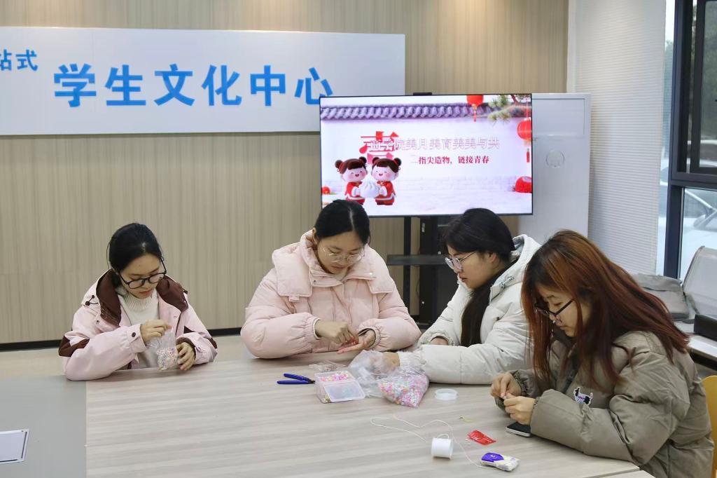活动中,同学们在轻松愉快的氛围中亲手制作各式串链与手机链。大家自由挑选配珠、编织绳线,发挥创意设计个人专属的手工作品。一条条精巧别致的链饰在指尖渐渐成型,不仅展现了同学们的动手能力,也传递出青春与创意的交融。黄钰莹对本次活动给予了充分肯定并表示:“手工创作是美育实践的重要形式,能够锻炼同学们的耐心与专注力,更能在串联与组合中激发创新思维。学院将继续鼓励和支持此类活动,为同学们搭建更多展现自我、交流互动的成长平台。”