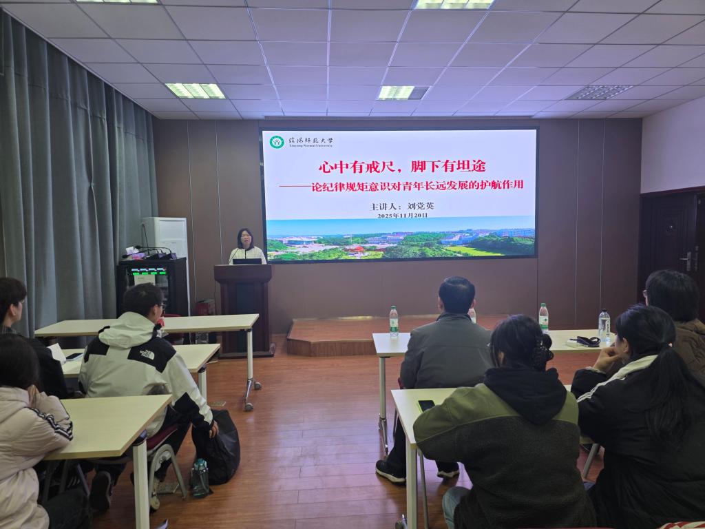 报告中,刘党英紧密结合党史与现实案例,阐述了严守党的纪律的重要性。她以《共产党宣言》的中文译本历程为切入点,系统梳理了从党的一大至今党的纪律建设脉络,深刻指出“纪律建设是党的生命线”。她聚焦青年实际,通过对高校领域青年违纪违法典型反面案例的深入剖析,生动解读了党的“六大纪律”,为在场学子敲响警钟。最后,她深情讲述了从大别山革命老区走出的徐海东、许世友、吴焕先等革命先辈的感人事迹,通过他们严于律己、廉洁治家的家风故事,将红色基因的传承与当代青年的责任紧密连接。
